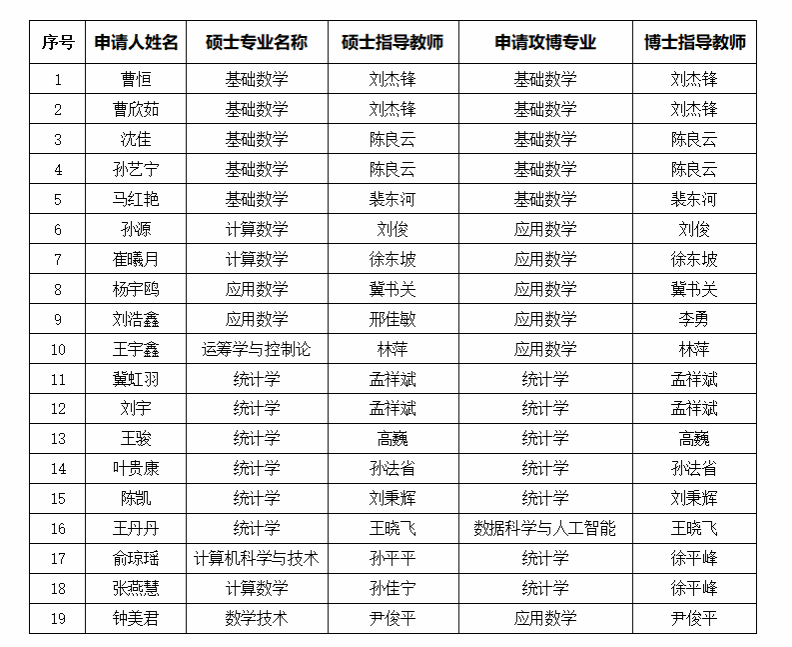 学院正在开展2026年硕博连读研究生选拔工作,经过学生申请、导师同意、学院硕博连读考核小组考核,初步确定曹恒等19人通过学院审核,现予以公示,公示名单详见下图。